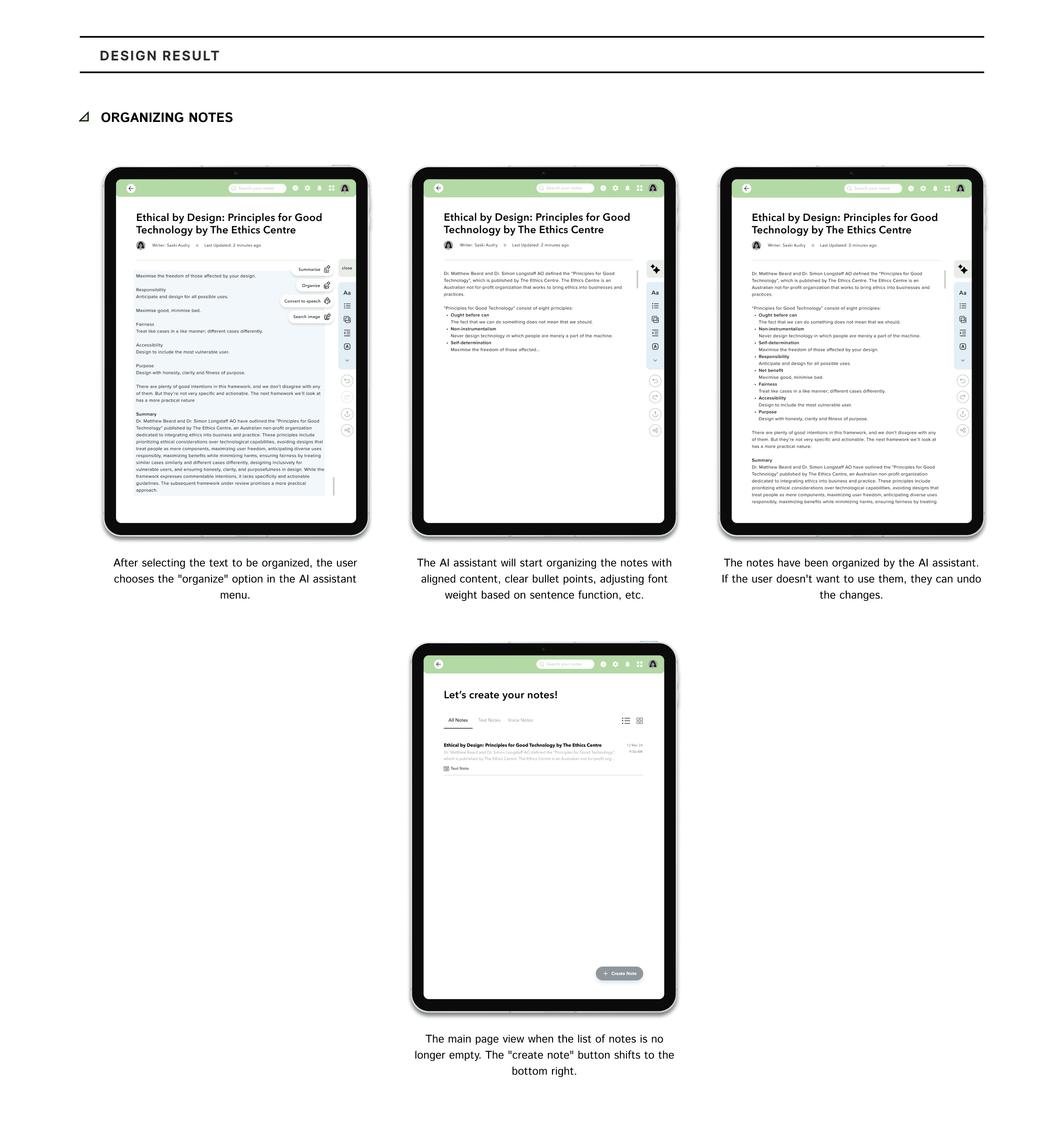 FINAL DESIGN: SUMMARIZING NOTES
